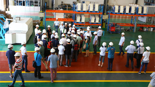 由中華環(huán)保聯(lián)合會組織的共計(jì)50多人的參訪團(tuán),在郅立鵬董事長的引領(lǐng)下先后參觀了納博科的“創(chuàng)新中心”、“VOCs凈化技術(shù)產(chǎn)業(yè)化應(yīng)用綜合測試平臺”、“分子篩吸附濃縮轉(zhuǎn)輪組裝生產(chǎn)線”等現(xiàn)代化生產(chǎn)創(chuàng)新平臺。
