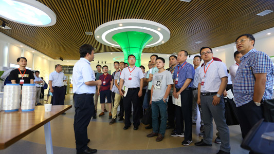在“創(chuàng)新中心”,參訪團(tuán)詳細(xì)了解了納博科的發(fā)展史、核心材料和產(chǎn)品、專利成果、治理工程案例及設(shè)備電控操作平臺,伴著咖啡的清香和綠色清涼的空氣,分享和傾聽的氛圍燃起了一波小高潮。